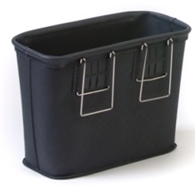 Контейнер/подвеска предназначена для хранения и переноски инвентаря и других принадлежностей для уборки. Имеет форму усеченного конуса, слегка расширяющегося кверху, с закругленным открытым верхним краем. Крепление к вертикальной поверхности осуществляется за счет наличия стальной хромированной дуги-зажима. Возможно крепление как к тележке, так и к поясу работника. Изготовлен из влагостойкого эластичного пластика, устойчивого к воздействию моющих и дезинфицирующих средств.
